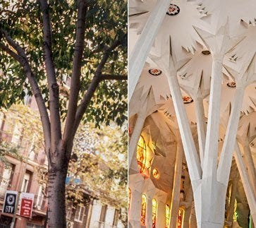 Antoni Gaudi drew inspiration for the design from natural forms. He believed that the best way to honor God was through design derived from his creations AKA nature — . For the catalan architect, form and function were one in the same, and biomimicry helped him solve many structural engineering challenges all while maintaining the naturalistic aesthetics of his design.