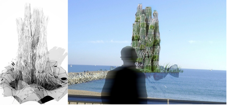 For this project, the structure of sea sponges was meticulously examined to extract their genetic and structural rules and digitalize them. Sponges also work with fractal geometry and applying this logic to structural elements results in material optimization (because less material is used) and lighter but equally resistant elements. In addition, the digital design of this skyscraper was done so that real sea sponges could be integrated as lattice griders on the walls, creating a real biologic symbiosis.
