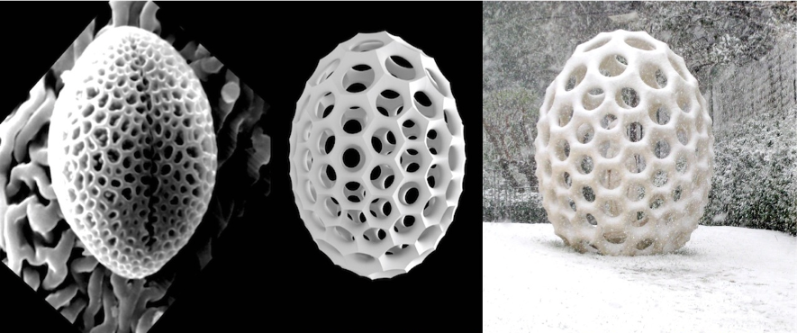 Biodigital and Genetic Architecture is all about the fusion of biologic and digital technology. Alberto T. Estévez is one of Europe’s greatest experts and this article explores his creations and working methods. Alberto’s work is all about converting the building stock into a living organisim. To do so, he finds shapes, patterns and behaviours by analyzing vegetal and animal cells under the microscope, and then uses CAD-CAM technologies to digitalize what he sees and transform it into a larger scale, 3D structure. If DNA is what defines us, his idea is to reproduce these proteins converting them into zeros and ones to create organic-based softwares. In other words, he’s turning natural intelligence into artificial intelligence. Here are some of his projects: