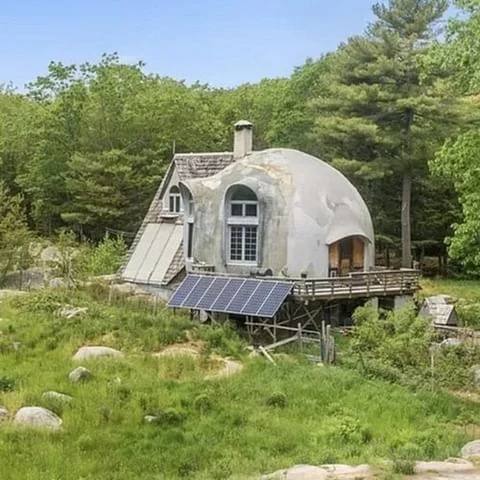 This handcrafted dome among the woods of coastal Maine, has been home to an artist since 2003. This architectural craft was hand-built by sculptor Daphne Pulsifer and her partner Daniel Bates and it hybridizes the typical New England cottage with an earthen monolith, celebrating pastoral tradition in a contemporary manner.