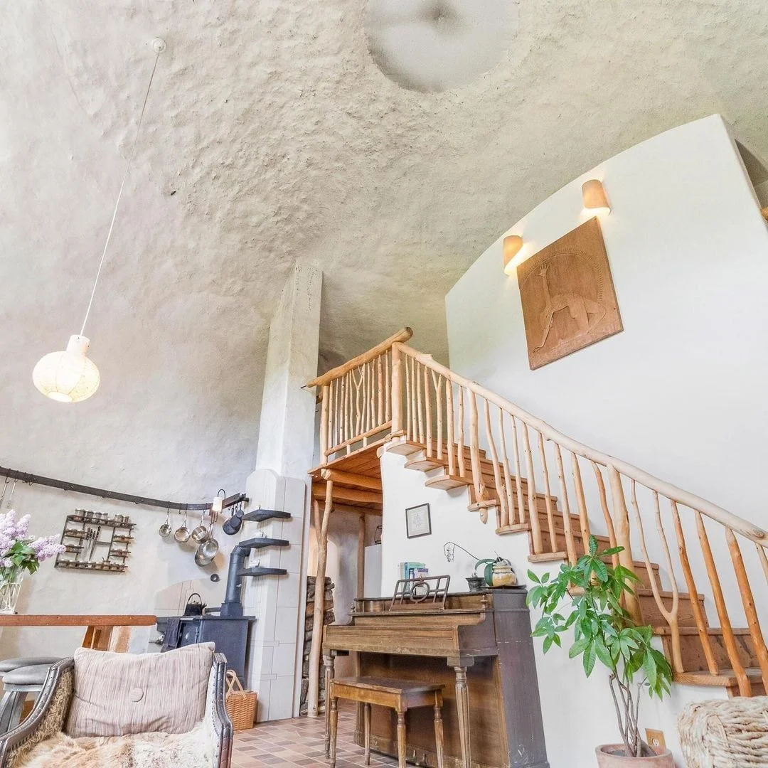 In addition to being a literal art work, a sculpture, this home has an exemplary energetic performance, giving it the ability of working off-grid. Once the house began to take shape, the sculptors asked for consultation from the Monolithic Dome Institute and achieved this construction that can work off-grid. Despite its traditional looks, modern technologies such as photovoltaic panels and a gas water heater, allows the occupants to take one step forward towards a more sustainable way of living.