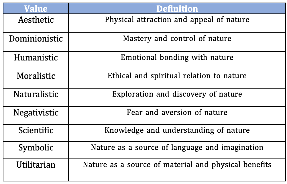 These relationships are directly related to the typology of the 9 biophilic values, which are as follow: